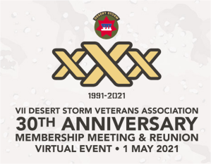 Acting in an abundance of caution and with an eye toward the safety of our membership and guests, we have cancelled the in-person celebration (29 Apr – 2 May) and will conduct a virtual ceremony to commemorate the 30th Anniversary of OPERATIONS DESERT SHIELD/STORM on 1 May via ZOOM (time TBD).